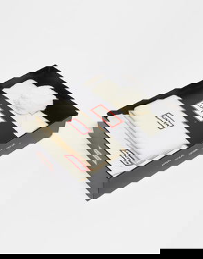 Unisex Ribbed Pom Pom Beanie And Scarf Gift Set In Cream