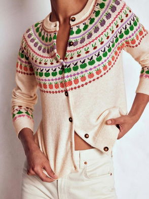 Edie Fair Isle Fruits Wool Blend Cardigan, Ecru