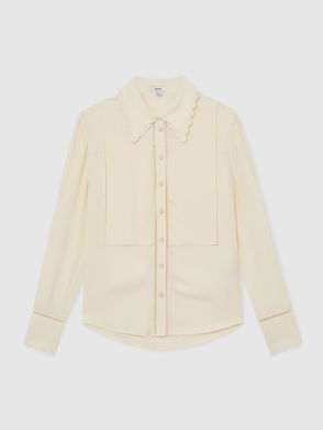 Scallop-Trim Ladder-Stitch Shirt In Cream