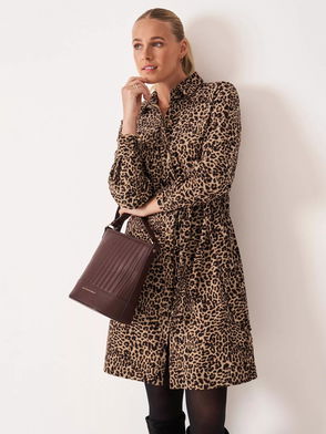 Elsie Leopard Print Corduroy Shirt Dress, Beige