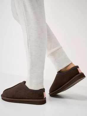 Suede Mule Slippers, Taupe