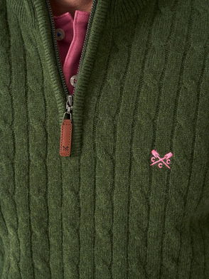 Half-Zip Lambswool Cable Knit Jumper, Emerald Green