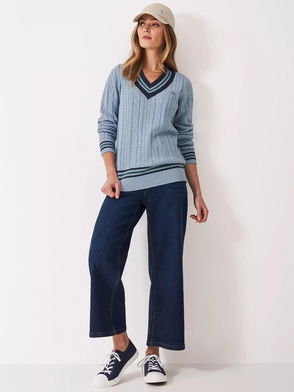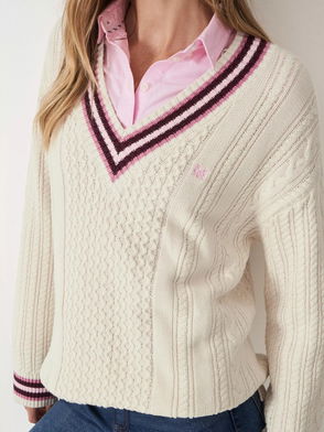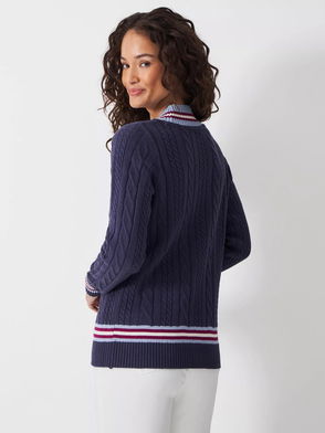 Heritage V-Neck Cable Knit Cashmere Blend Jumper