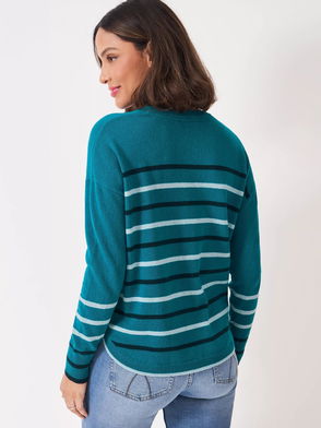 Harmony Rosie Stripe Wool Rich Jumper, Airforce Blue