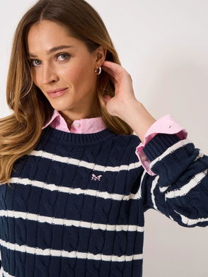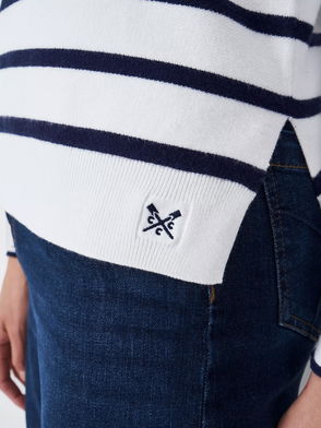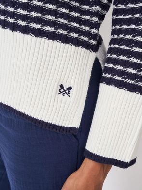 Stripe Tuck Stitch Jumper, Navy Blue/White
