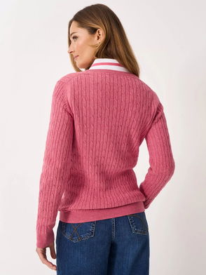 Heritage V-Neck Cable Knit Jumper, Bright Pink