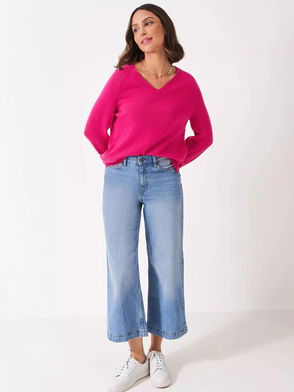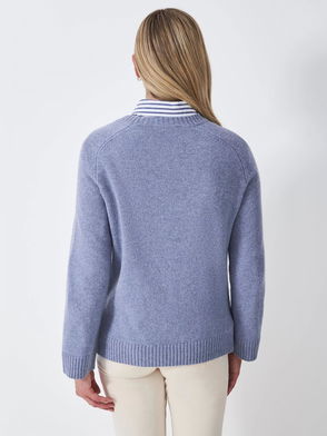 Harmony Colour Contrast Wool Rich Jumper, Light Blue