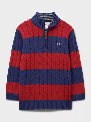 Kids' Oarsman Cable Knit Half Zip Jumper, Multi Red