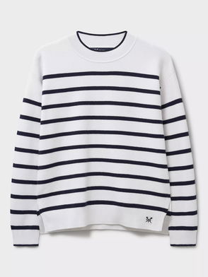 Cotton Stripe Three Quarter Sleeve Crew Neck Jumper
