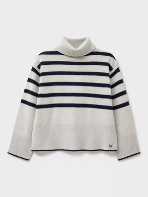 Stripe Tuck Stitch Jumper, Navy Blue/White