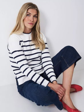 Cotton Stripe Three Quarter Sleeve Crew Neck Jumper