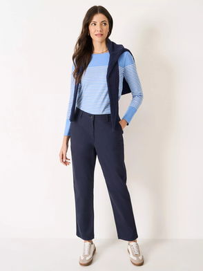 Gabriella Crew Neck Broderie Blouse, Navy Blue