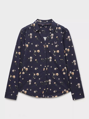 Floral V-Neck Long Sleeve Jersey Shirt, Navy