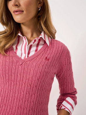 Heritage V-Neck Cable Knit Jumper, Bright Pink
