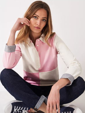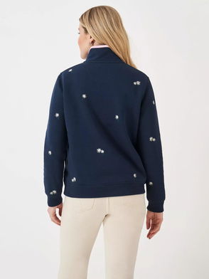 Embroidered Daisies 1/2 Zip Sweatshirt, Dark Pink