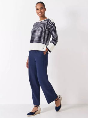 Stripe Tuck Stitch Jumper, Navy Blue/White