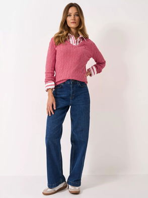 Heritage V-Neck Cable Knit Jumper, Bright Pink