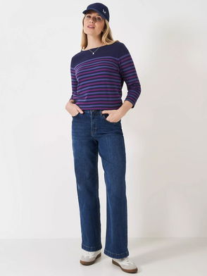Harmony Rosie Stripe Wool Rich Jumper, Airforce Blue