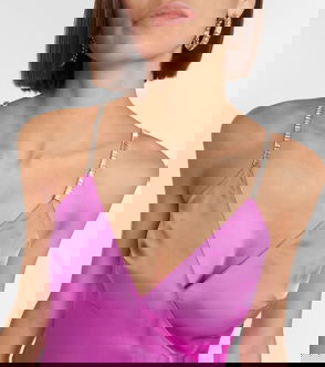 Embellished Cutout Satin Slip Dress