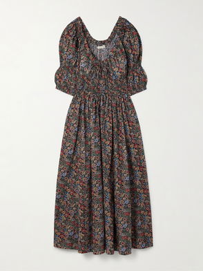 Emmaretta Shirred Floral-Print Cotton-Voile Midi Dress