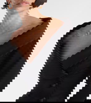 Bow-detail Ruched Satin-trimmed Midi Dress