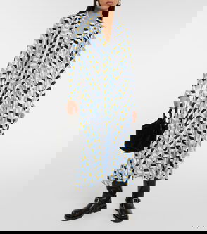 Asymmetric Printed Silk Twill Midi Dress