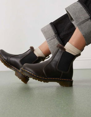 Dr Martens 2976 Leonore Chelsea Boot With Faux Fur Lining In Deep Brown