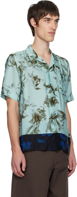 Green & White Hand-Dyed Floral Shirt
