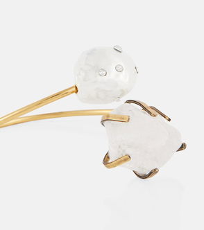 Small Flower Half Ring Brass And Glass Crystals Earrings