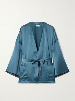 Ondine Belted Lace-trimmed Silk-satin Robe