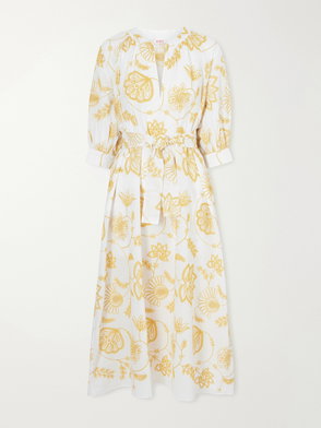 Sari Anjana Belted Embroidered Cotton-blend Midi Dress