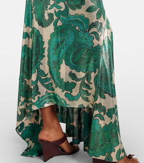 Paisley Open-back Lamé Maxi Dress