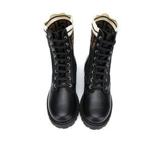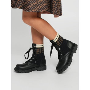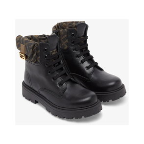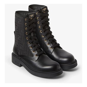 Black Leather FF Pattern Boots