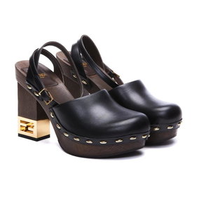 Calfskin Leather Clogs With Open Back Design