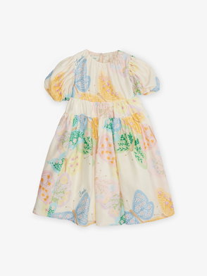 Butterfly-Print Brand-Embroidered Satin Dress 4-8 Years