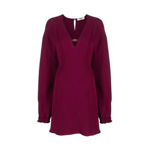 Red Silk Jacquard Dress With V-Neck