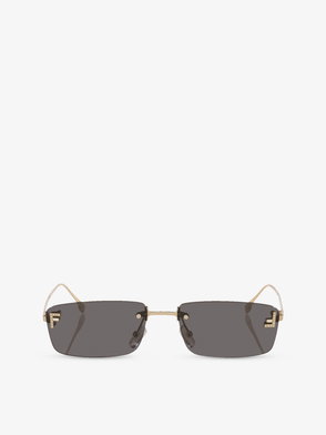 Rectangular Metal Frame Sunglasses With Rhinestone F Detail
