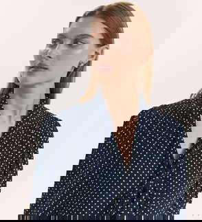 Mavis Navy Polka Dot Pussy Bow Crepe Blouse