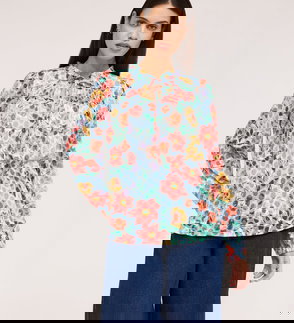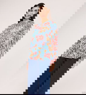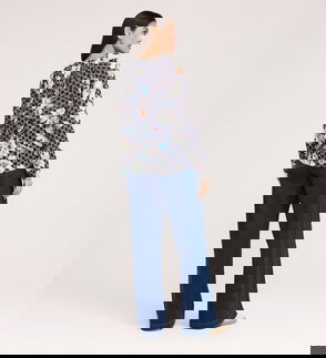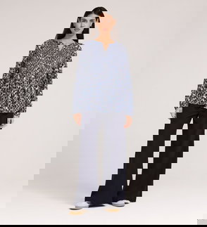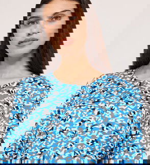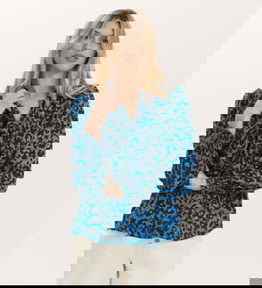 Lindsay Blue Animal Print Pussy Bow Blouse