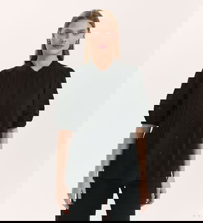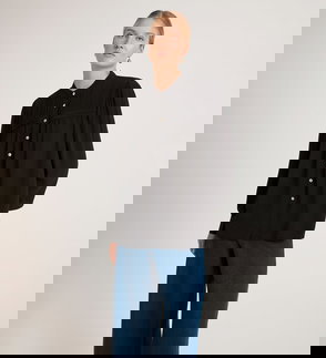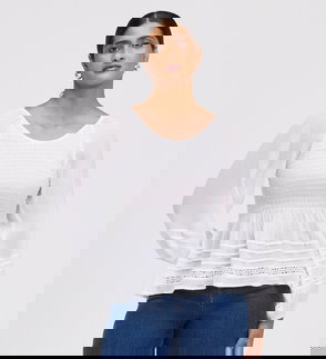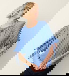 Jennie Navy Cotton Lace Blouson Sleeve Top