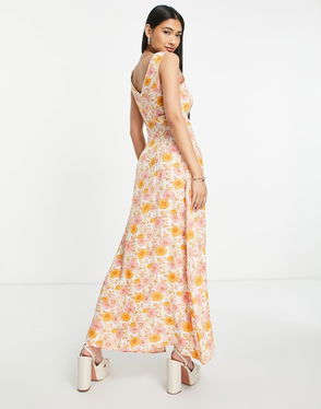 Midaxi Bustier Dress With Keyhole Twist Front Detail In Floral Print