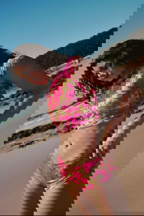 Strappy Cami Top With Front Drawstring Detail In Red Multi Abstract Floral