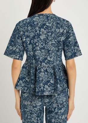Shirred Floral-Print Organic Cotton-Blend Poplin Blouse