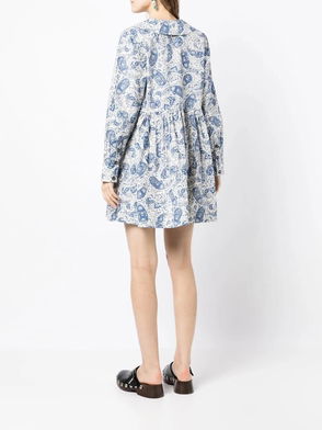 Graphic-print Gathered Dress - Blue