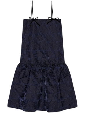 Floral-jacquard Puff-sleeve Dress - Blue