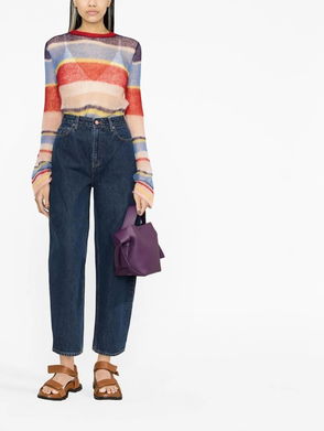 Betzy Floral-Jacquard Cropped High-Rise Straight-Leg Organic Jeans