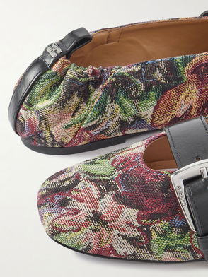 Leather-trimmed Canvas-jacquard Ballet Flats