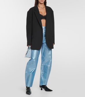 Lace-up Glossed Snake-effect Ballet Flats