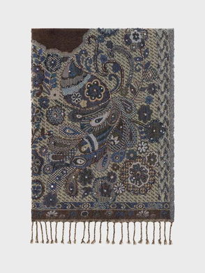 Renata Embroidered Floral Wool Rich Scarf, Navy