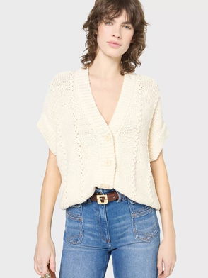 Joss Linen Openwork Contrast Tipped Knit, Ecru